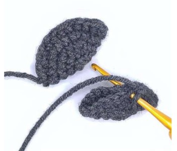 1 sc, 1 hdc, 15 Dc, 1 hdc, 1 sc.