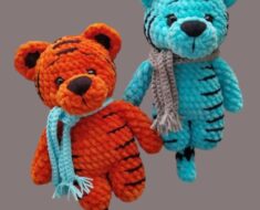 I knit for knitting a magic ring, you can take any. The one you love or the one that is available. If you don’t want to knit a striped cat ring, knit a solid one. In the photo of the details I have just that, one-color. If you decide to knit a striped magic ring, then do not bother too much where the magic ring