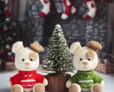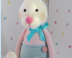Amigurumi pattern for a cute crochet pig toy. The legs are joined to the body with buttons: they can move. The height of finished amigurumi pig is about 16 cm (6.2″).