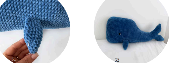 64 rnd: 3 dec (decreases must be located in the bottom part of the whale.